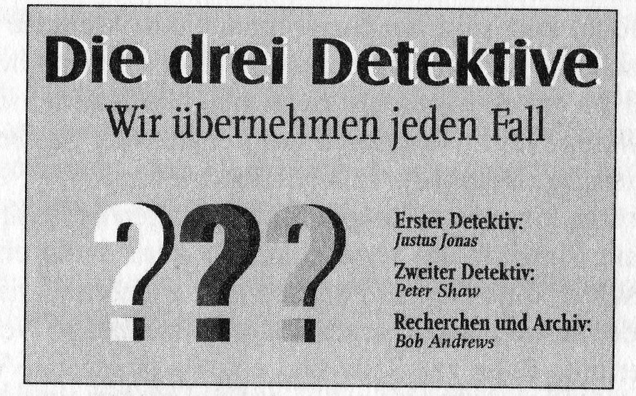 Die drei ??? | Die drei Fragezeichen Wiki | FANDOM powered ... from vignette2.wikia.nocookie.net Die drei fragezeichen justus peter und bob bekommen source wwwbentode. Die dazugehörige hörspielserie wird vom hörspiellabel europa veröffentlicht. Justus jonas ist als erster detektiv der anführer und gründer der drei ???. Sie ist ein ableger der erfolgreichen buchserie die drei ???, jedoch als eigenständige serie zu betrachten. Drei fragezeichen malvorlage kostenlose malvorlagen. Er lebt bei seinem onkel titus und seiner tante mathilda auf dem schrottplatz, da justus hat ziemlich viel gehirnschmalz, weshalb er auch oft als erster auf die lösung der fälle kommt. Justus jupiter jonas (im original jupiter jones) ist einer der gründer der drei fragezeichen und gleichzeitig der erste detektiv. Kids zu einem geheimnisvollen schloss, dem reich.