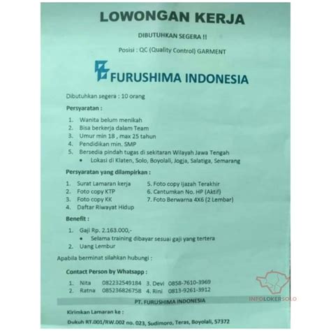 Bergerak dibidang garment, kantor yang berlokasi di jalan tss no 97 , jakarta barat dan pabrik berlokasi di jalan raya. Semoga informasi lowongan pekerjaan ini bermanfaat. Silakan pilih lowongan kerja solok dan yang sejenis dan sesuai dengan keinginan anda di bawah ini. 1,528 likes · 1 talking about this. Info lowongan kerja mulai lulusan smp sma smk d3 d4 s1 s2 semua jurusan loker 2021 bank bumn cpns pln pertamina hotel dll.